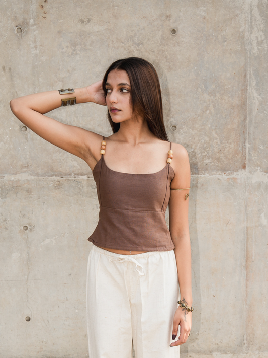 Boho Beads Top in Brown